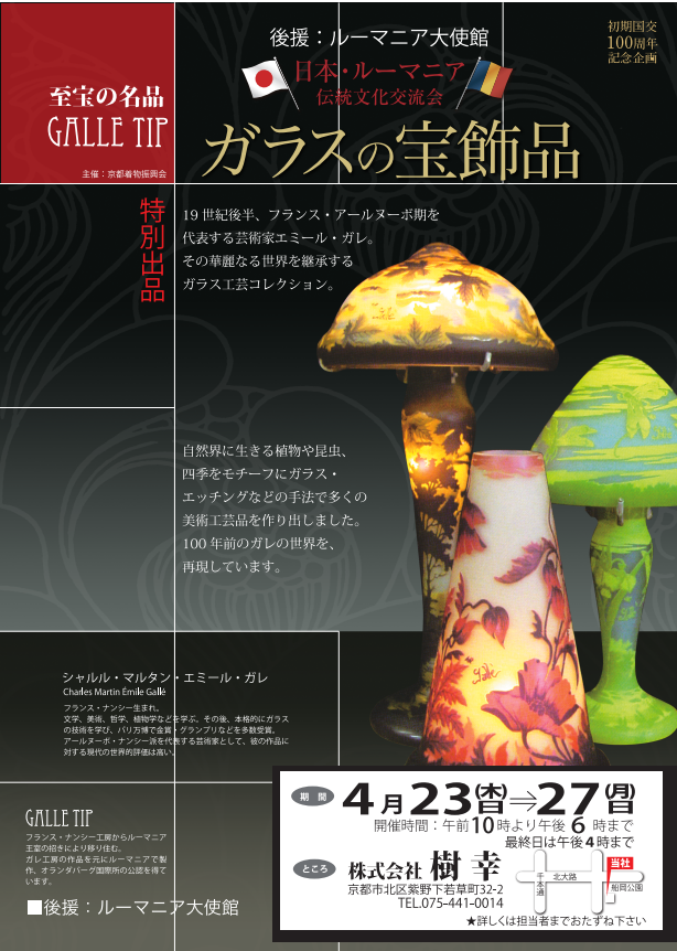 2026年3月25日 ガレ展 開催! 平素は格別のお引き立てを賜り、ありがたく厚く御礼申し上げます。 この度4月23日(木)~4月27日(月)まで弊社特設会場にて 「ガレ展」 を開催します。 ぜひご来場くださいますようお願いいたします。
